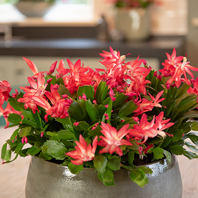 Schlumbergera Red has many nicknames. such as the Christmas cactus, or Crab cactus. It's a very popular and easy-to-care-for succulent. Unlike most succulents and cacti, Schlumbergeras aren’t native to arid regions, but instead, they thrive in subtropical and tropical climates. The tubular red flowers of the schlumbergera Red are beautiful; they have a long bloom time.