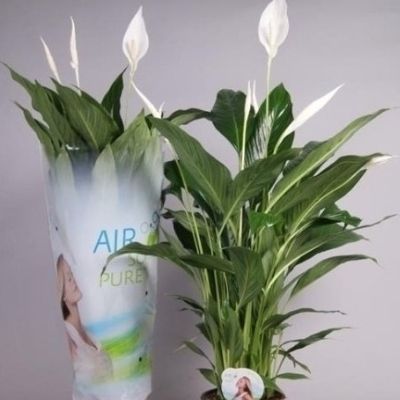 The Spathiphyllum is also called the ‘spoon’ or ‘flag’ plant. It originally came from Colombia and Venezuela and belongs to the Araceae family. In 1870 the Spathiphyllum was introduced in Europe. The upright white flowers are characteristic of this plant.